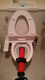 この道具はラバーカップと同じ原理で水圧をかけることによりトイレのつまりを解決する道具です。強力な吸引力と押し下げる圧力でつまりを解消します。