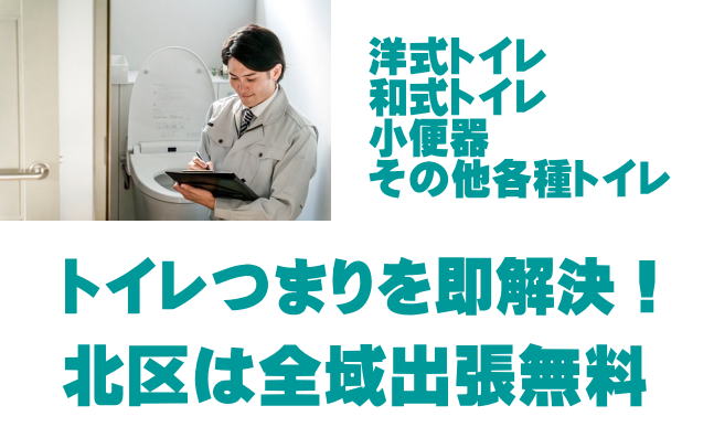 北区で対応可能なトイレつまりの修理サービスとなります。