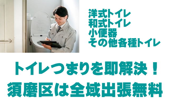 須磨区で対応可能なトイレつまりの修理サービスとなります。